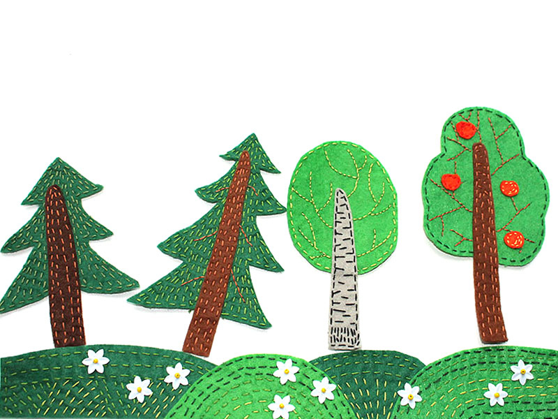 Все декорации фетровые, съемные - чтобы удобно было показывать разные сказки.